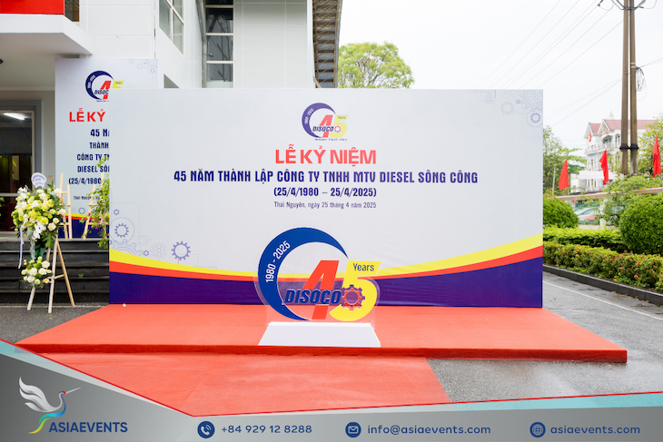 AsiaEvents recently had the honor of managing the 45th anniversary celebration of Diesel Song Cong Co., Ltd (DISOCO) — a key player in Vietnam’s diesel engine and mechanical manufacturing sector. Held in Thai Nguyen, the event gathered company leaders, partners, and employees to celebrate a proud legacy of innovation and steady growth.
